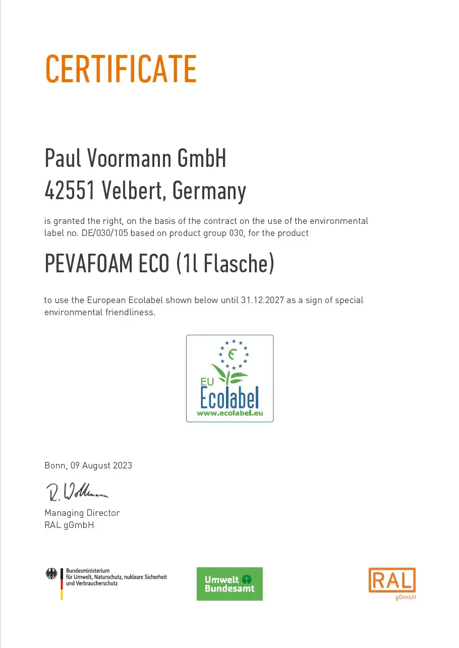 PEVAFOAM ECO – Ecolabel certificate