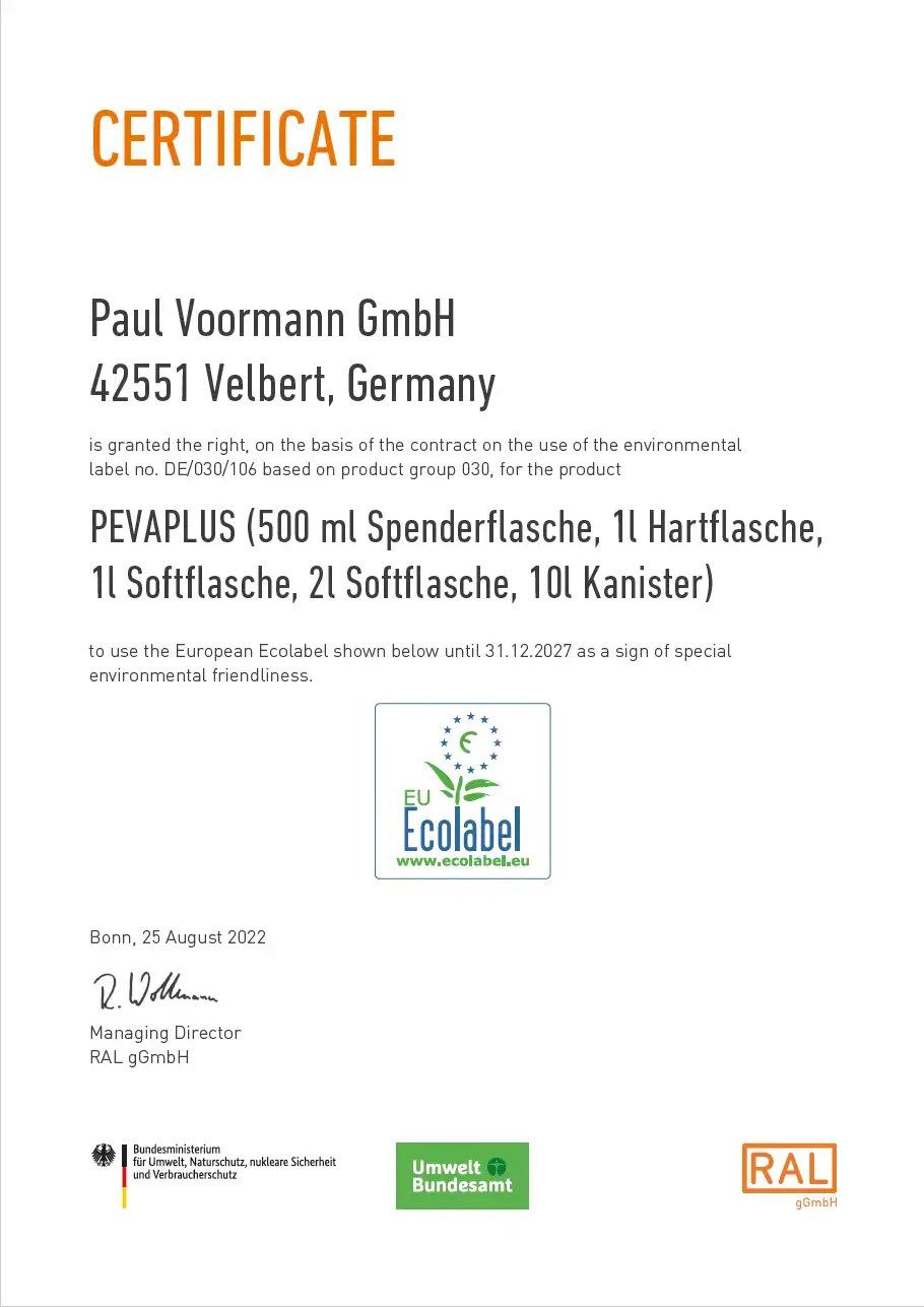 PEVAPLUS – Ecolabel