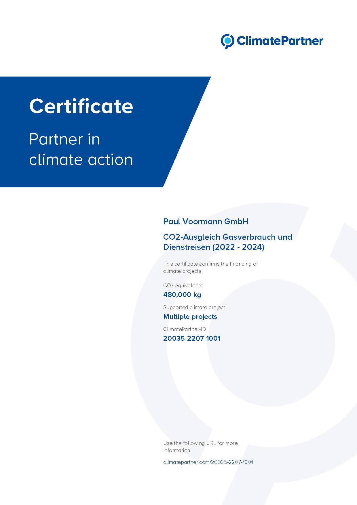 Certificate Climate Partner
